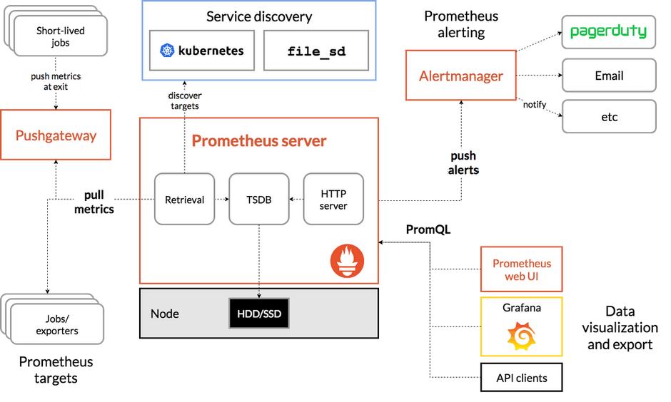 - Getting the list of endpoints to scrape can be handled by service discovery - Prometheus was built for Kubernetes, and the containers in k8s pods and nodes are continually changing, but k8s can provide a list of the endpoints at any given moment.